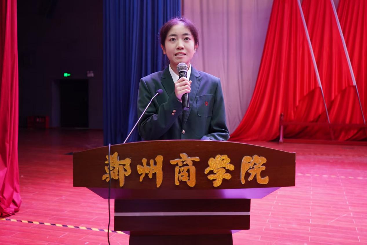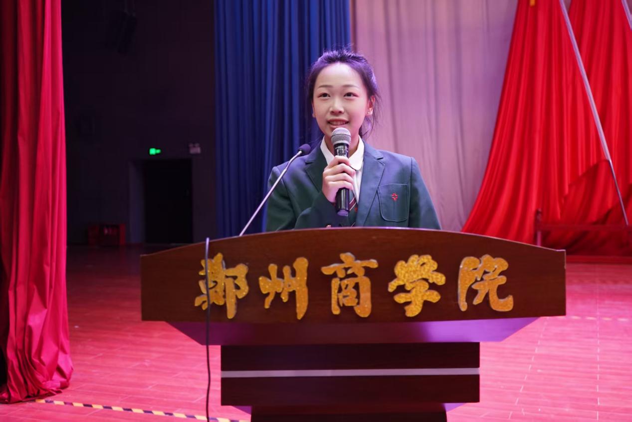 师长的托言后便是学生间互助,23营销2班孙亚轩同学以自身经历为基础,通过“责任”“实践”“坚守”三个关键词向新生分享大学成长经验,并鼓励新生在服务中学会担当、在实践中增长见识、在坚守中实现成长。