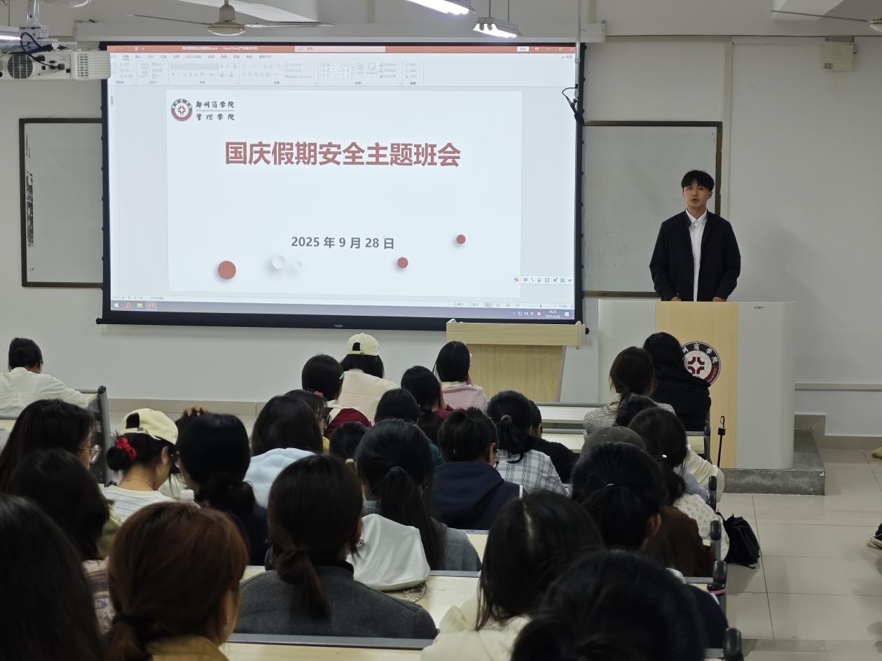 为进一步增强学生假期安全意识,确保全院学生度过一个平安、健康、愉快的“双节”假期,9月30日,我院积极组织各班级召开“双节假期离校安全教育”主题班会,全面部署假期安全工作。