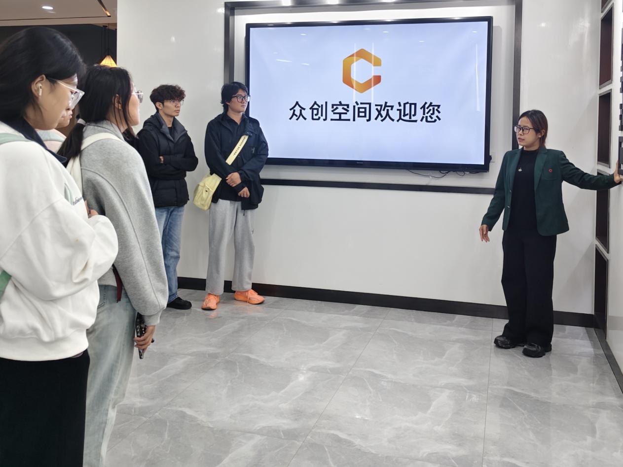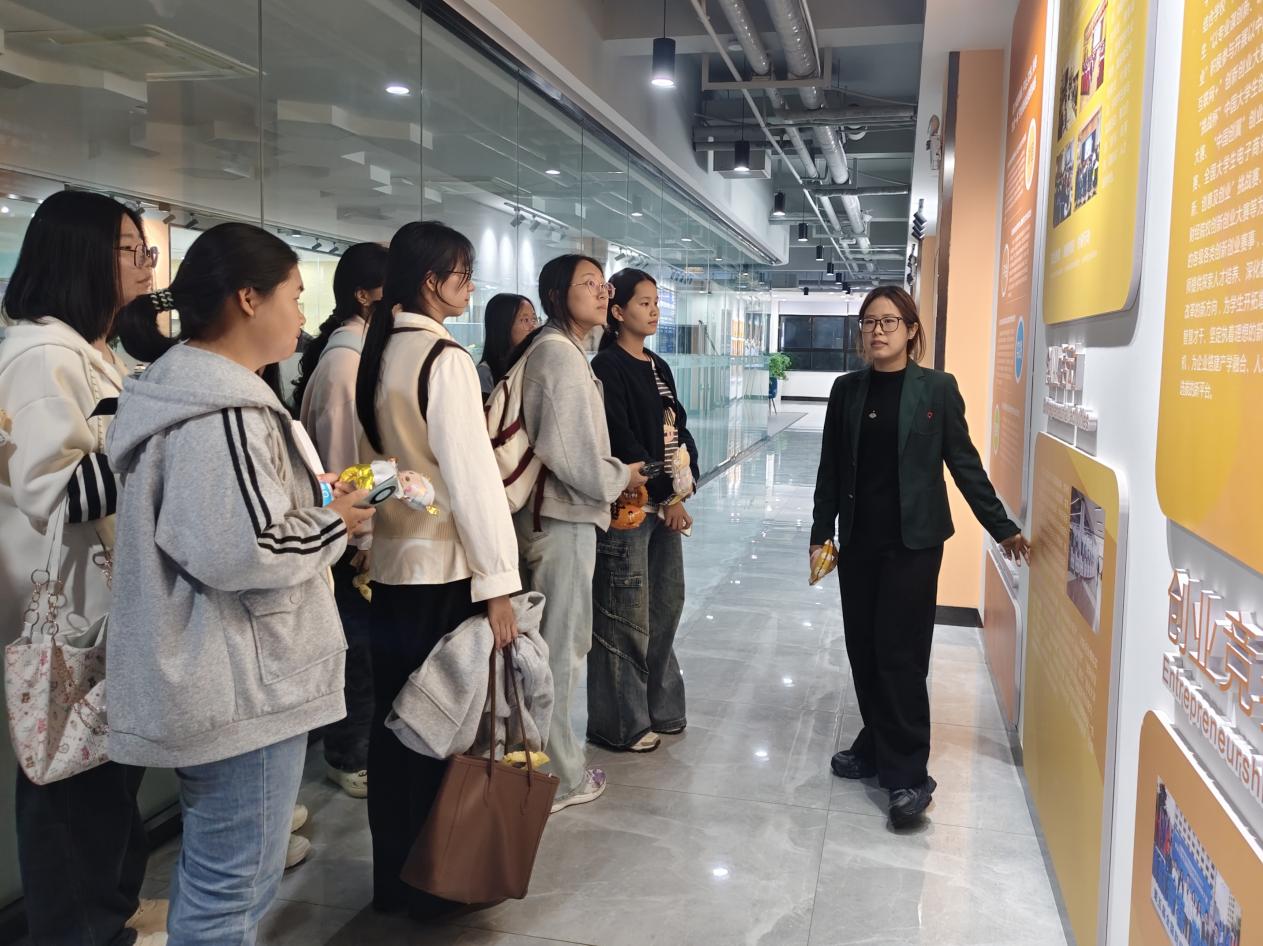 活动开始,众创空间讲解员向我院学子介绍了众创空间的发展历程、组织架构、发展脉络和优秀创业人员的事迹,带领学生有序参观了二楼功能区和三楼孵化区,并向同学们展示各个创业项目以及基础办公设施。在参观过程中,针对我院学生提出的疑问,讲解员耐心解答,并积极分享创业经验。最后,讲解员向同学们进一步讲解了众创空间的入驻政策、入驻流程、服务体系、项目申请等相关具体事项,帮助学生更加系统地认识众创空间。
