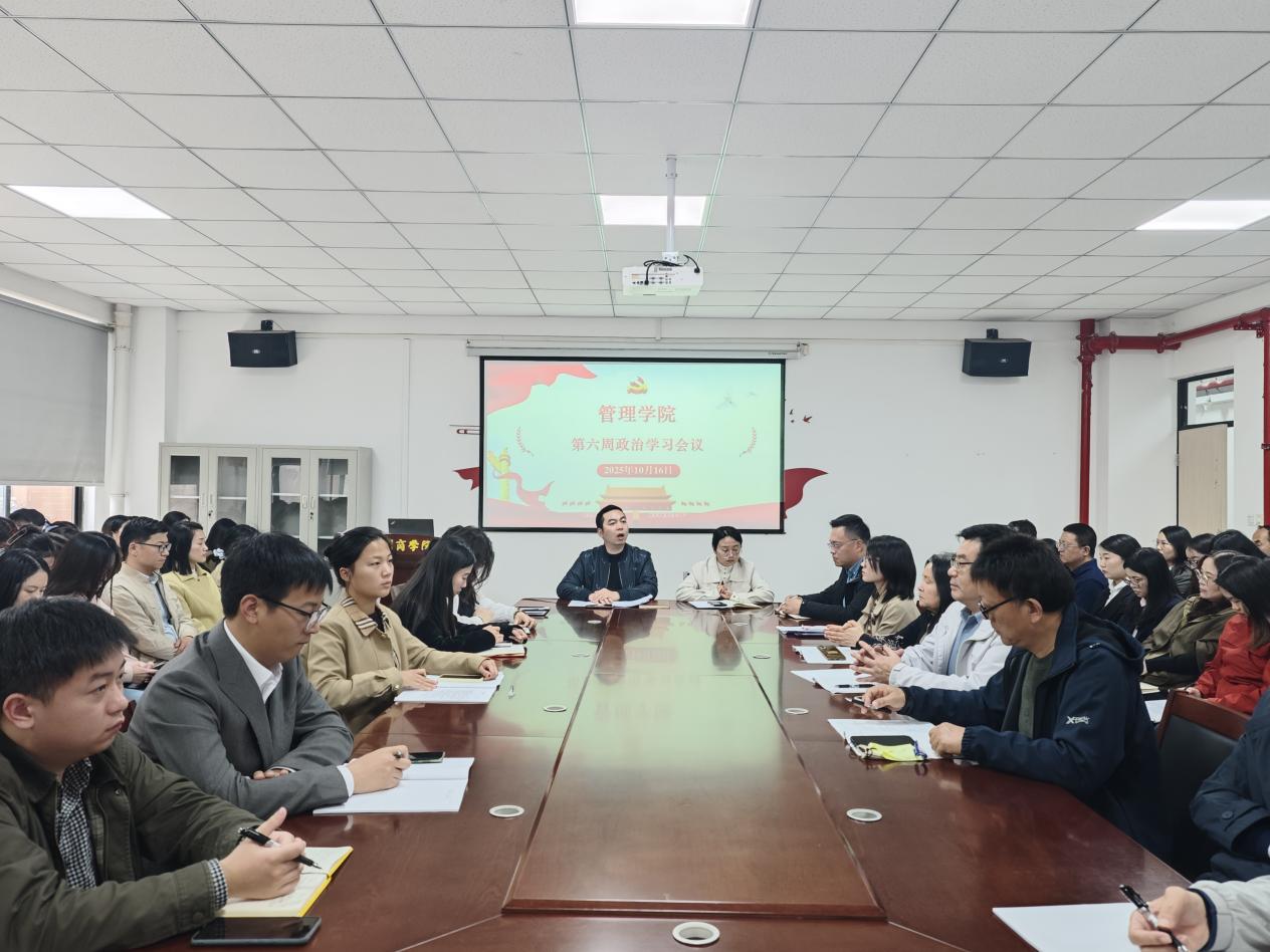 10月16日下午,我院在亚泽楼一楼会议室召开了2025-2026学年第一学期第6周政治学习专题会议,会议由党委书记宋森主持,我院院长李晓翠、副院长张卫丽及全体教职工参加会议。