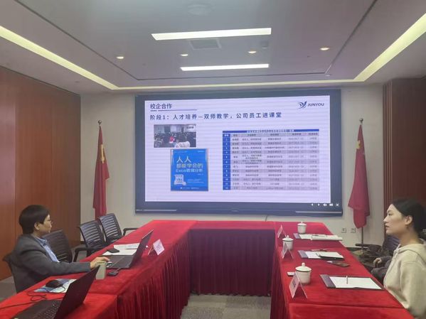访企过程中,学院团队参观了企业办公环境与技术研究中心,详细了解其业务流程、产品研发及数字化转型趋势。企业负责人王松枝强调,随着信息技术服务业快速发展,对具备经济管理知识与数字技能的复合型人才需求激增。邵焱老师介绍了学院总体发展情况以及2025届毕业生基本情况,她讲到访企拓岗是学校拓宽毕业生就业渠道、深化校企合作的重要途径,期望借助本次访企拓岗行动,进一步深化校企合作关系,拓宽学生实习与就业渠道,推动人才培养与企业需求精准匹配。双方围绕实习实训、人才培养方案优化及科研合作展开深入探讨,一致同意建立长期协作机制,推动产学研融合。