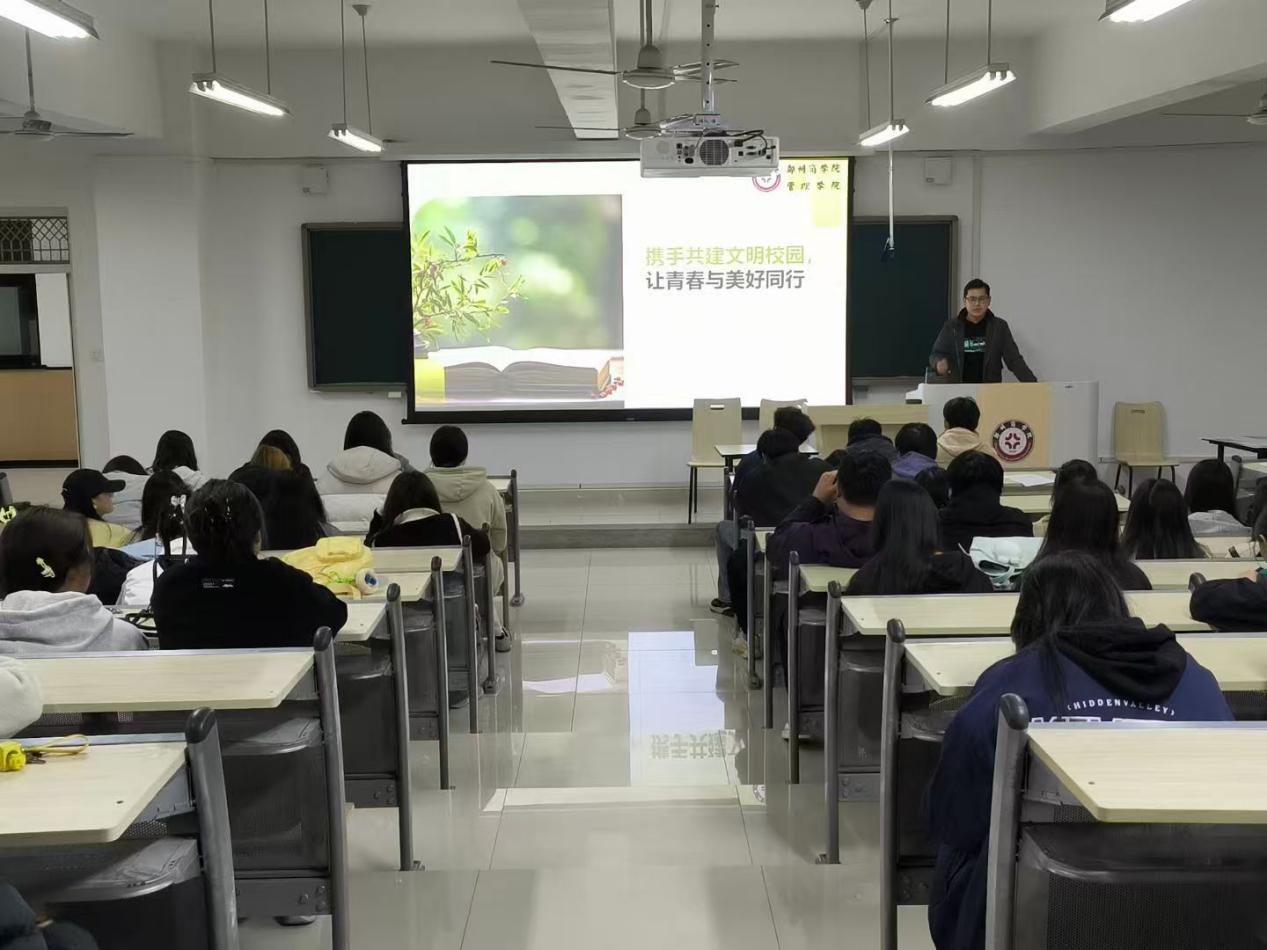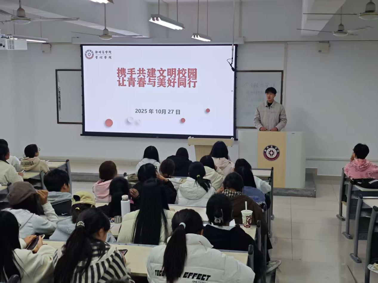 为营造文明和谐的校园环境,凝聚师生合力共建美好校园,10月28日,我院组织开展“携手共建文明校园,让青春与美好同行”主题班会。