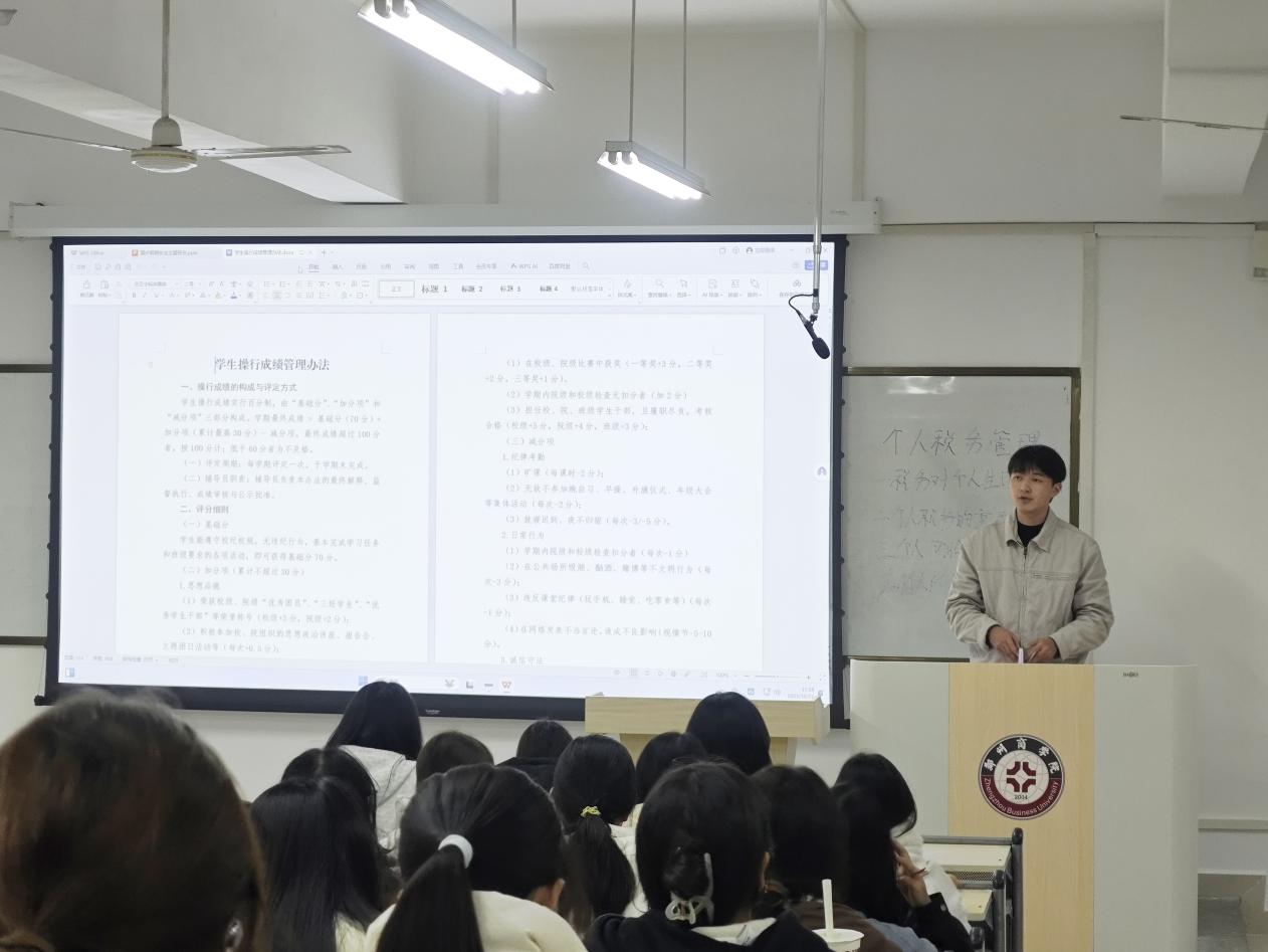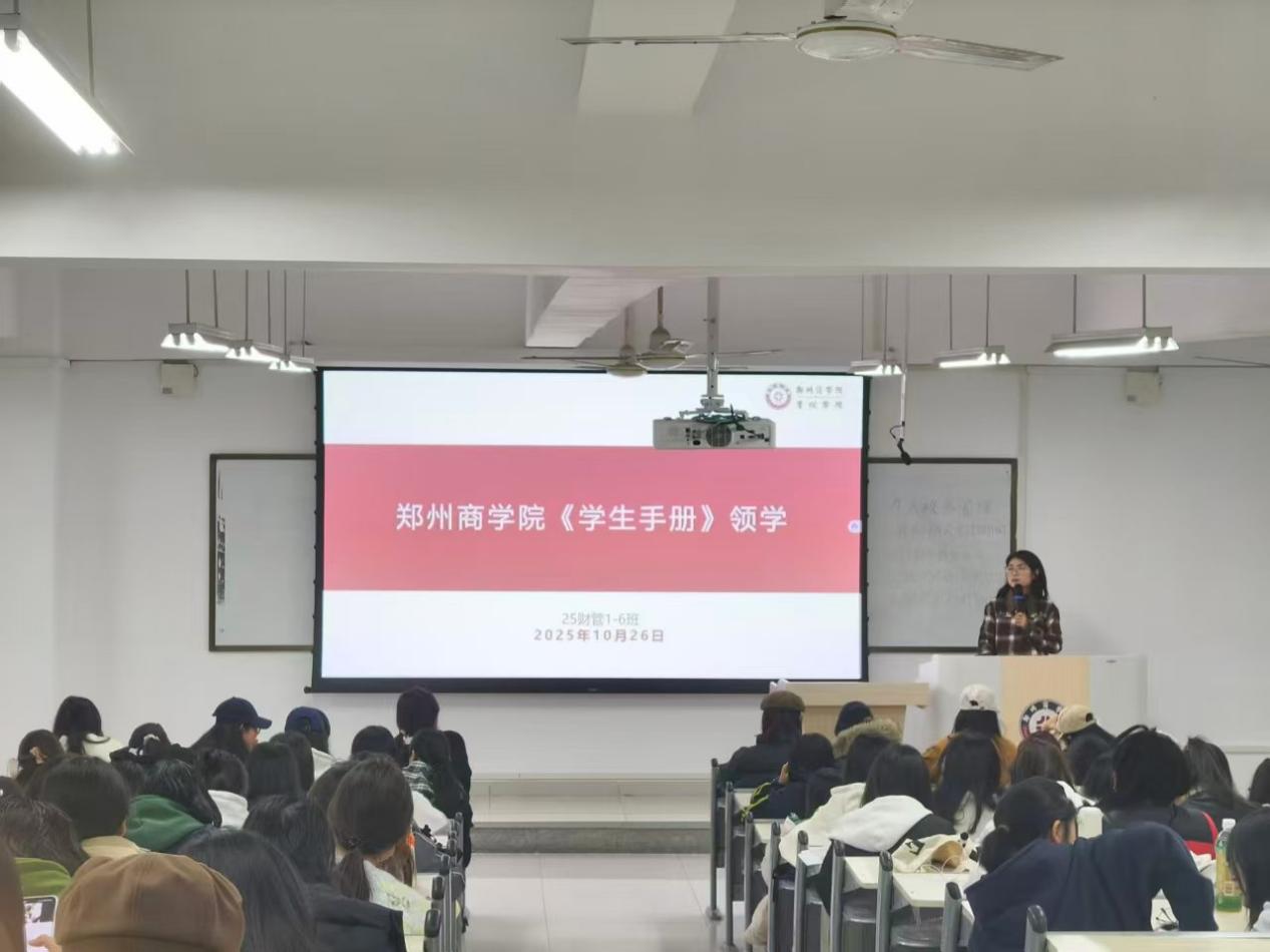 作为新生入学教育的核心环节,此次《学生手册》学习贯穿了9月和10月,实现全员覆盖、持续深化。前期,我院各班辅导员在每周日班会上以“原文解读+场景应用”相结合的方式,带领新生逐章逐节研读手册内容,从学籍管理办法、考试纪律到学生宿舍规则、劳动教育实施办法,逐项拆解核心条款,结合课堂出勤、宿舍安全、校园活动等高频场景,具象化讲解规章适用边界,让抽象的制度条文转化为可感知、可遵循的行为指南,确保每一位新生学深悟透、入脑入心。