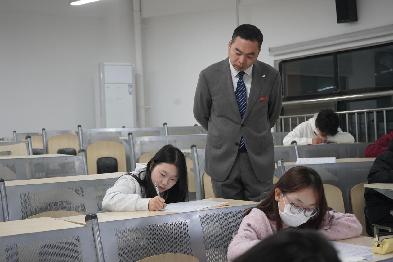 为检验学习成效,采用闭卷形式,考题紧密围绕新生校园生活关键需求,聚焦学习安排、日常管理、奖助学金等核心领域,精准考查新生对校规校纪的掌握程度与应用能力。考试过程中,监考人员恪尽职守,严格执行监考职责,有效维护了良好的考场秩序与考试公平。期间,我院党委书记宋森、2025级全体辅导员深入各考场巡视,详细了解考务组织与考场运行情况,并对本次考试的规范实施和有序推进给予了充分肯定。