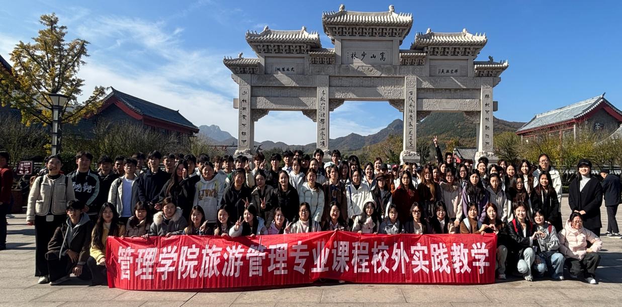 为深化产教融合,推动理论知识与行业实践深度衔接,2025年11月1日,管理学院组织23级旅游管理、25级旅游管理专升本学生,在《旅游地理学》《旅游规划与开发》两门核心课程任课教师贾珍珍、张轶群的带队下,赴嵩山少林寺景区开展“课程进景区”实践教学活动,近百名师生在“行走的课堂”中锤炼专业素养。