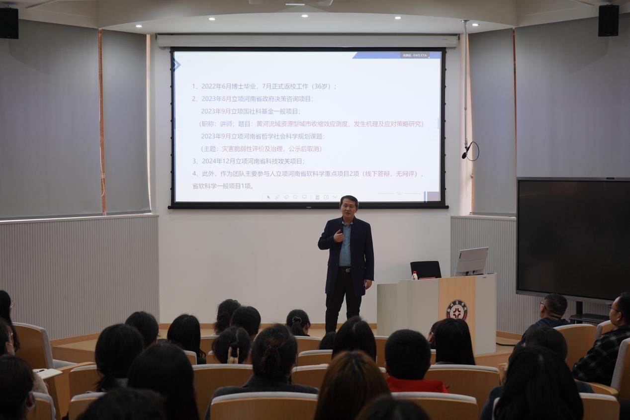 为进一步提升我院教师国家社科基金课题申报质量,夯实科研创新基础,11月4日,管理学院特邀河南牧业经济学院闫超华博士,在2101开展题为“国家社科基金申报的一些体会”的学术讲座,科研处处长刘志飞、管理学院院长李晓翠、副院长张卫丽及全院无课教师共同聆听,现场学术氛围浓厚。