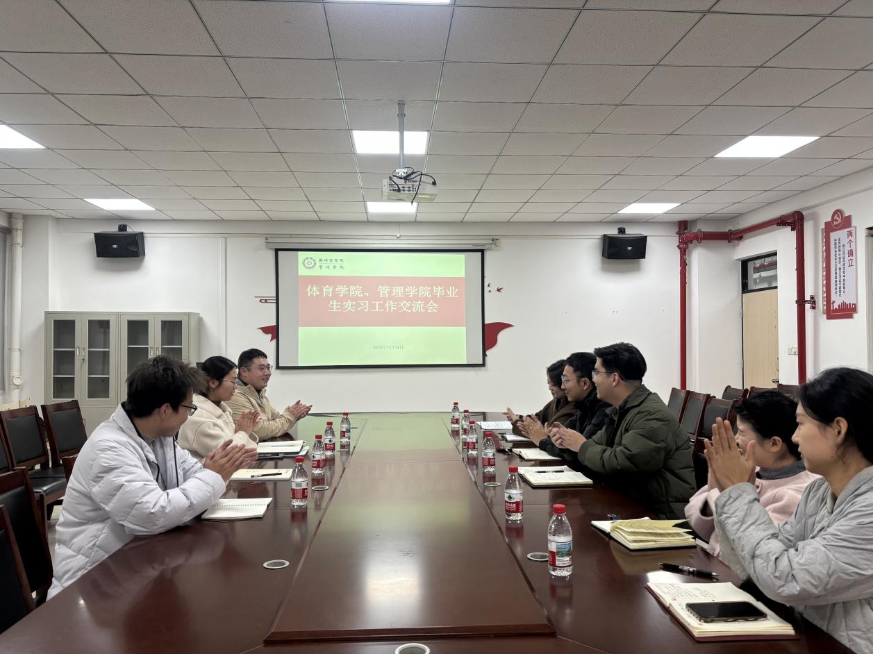 为提高毕业生实习工作成效,使学生实习管理工作成效迈入新台阶,11月14日,体育学院与管理学院在亚泽楼104室成功开展毕业生实习工作交流会。