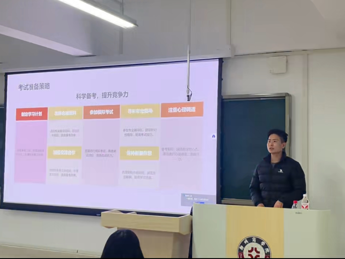 接下来,介一林同学针对退伍后考编的备考技巧与同学们进行了交流。他从退伍后考编的相关政策为出发点,为同学们讲解了退伍后考编的福利待遇与优势。结合自身退伍后成功考编上岸的经验,向同学们分享了自己的备考经验与心得,给同学们提出了科学备考的方法和计划。