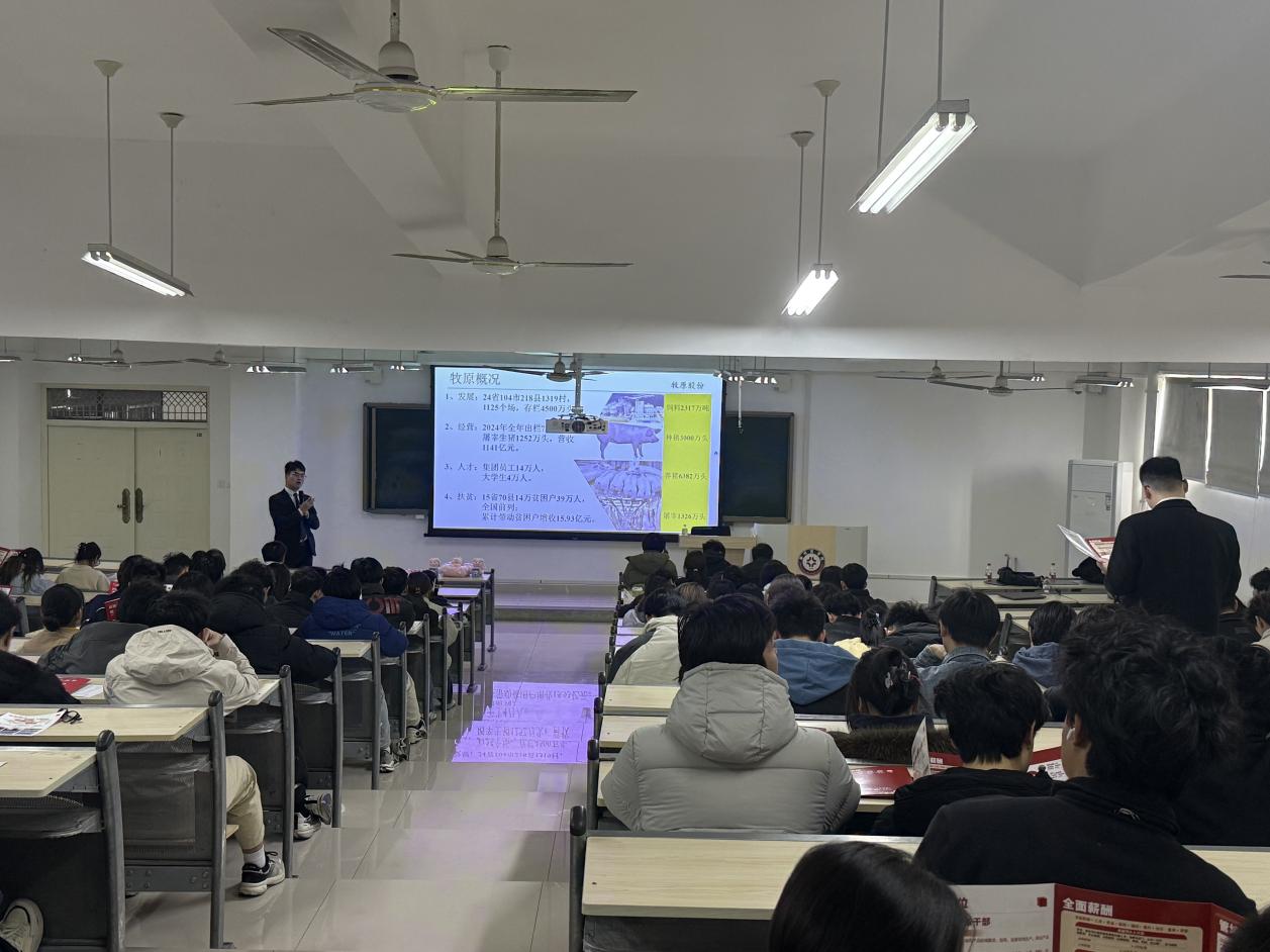 为积极推动2026届毕业生实习就业工作,切实为毕业生和用人单位搭建更加便捷有效的交流平台,持续提升我院学生就业质量,11月27日上午,管理学院邀请牧原食品股份有限公司于亚泽教学楼114教室举办专场宣讲会。