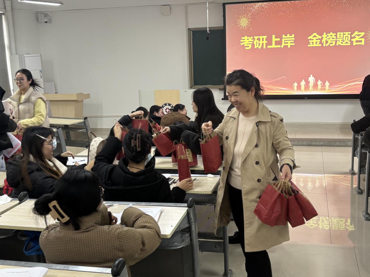 最后,老师们亲手将满载着深情厚意的“考研礼包”送到了同学们的手中,每一份都饱含着学院的深关怀与祝愿,如冬日暖阳般温暖着学生。同学们接过礼物,脸上洋溢着感动与喜悦的笑容,纷纷表示倍感温暖、信心满满。