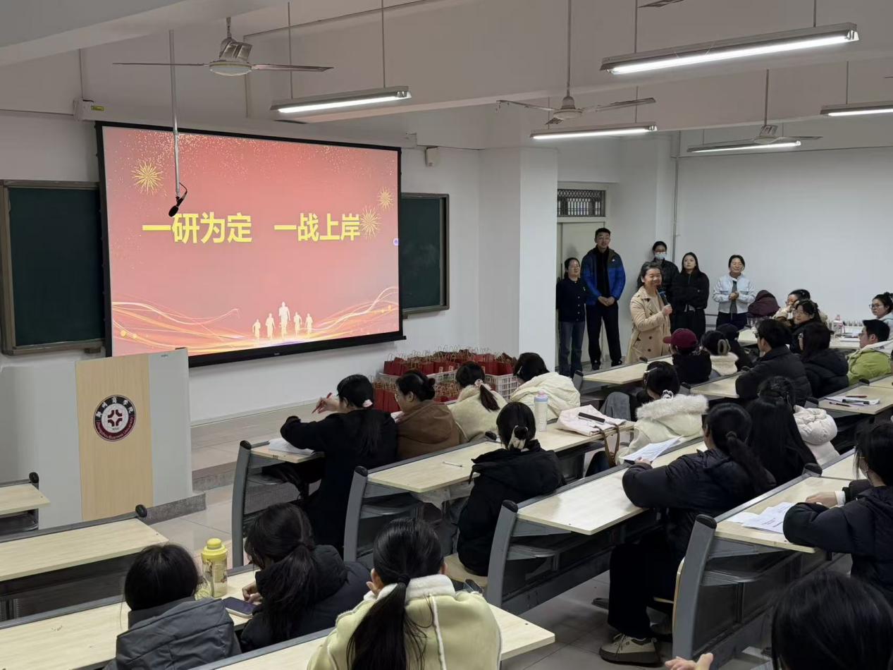 2026年全国硕士研究生招生考试已进入冲刺倒计时,为帮助考研学子坚定信心、缓解压力,以最佳状态迎接挑战,12月9日上午,我院在亚泽楼104教室,精心组织开展了2026届考研学生考前指导与慰问活动。院长李晓翠、副院长张卫丽、考研指导老师、毕业班辅导员及考研学生共同参与,活动由考研教研室主任贾娇主持。