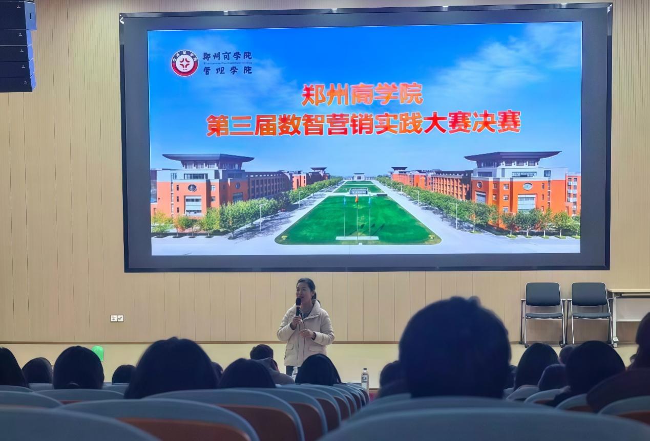 为培养传承和弘扬现代企业家精神的新商科应用型人才,锤炼学生豫商文化精神行动能力,激发学子创新创业热情,引导学生投身数字经济建设,展现郑商学子昂扬风貌与扎实营销技能,12月23日晚,由我院数智营销协会举办的第三届“数智营销”实践大赛决赛在体育馆负二楼报告厅顺利举行。管理学院副院长张卫丽、市场营销教研室夏飞教授、刘红晓教授,国际商务教研室主任刘慧云及邓一平教授出席活动。