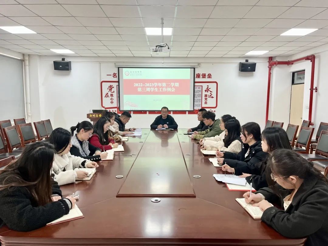 2月21日下午,建工学院在亚泽大楼113会议室召开第三周学生工作会议,党委书记朱宏东、团委书记刘帅以及全体辅导员参加会议。