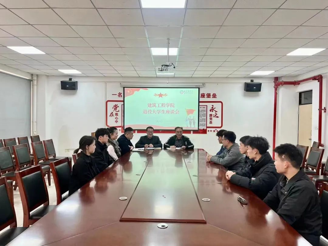 为深入了解退役军人学生的生活和学习情况,切实做好学院退伍大学生的服务工作,进一步深化党的二十大教育学习成果,激励退伍大学生继续保持人民军队的优良传统和作风,在学院中充当学习模范、中流砥柱的作用,坚定理想信念,树立崇高理想,增强退役军人的荣誉感、归属感和幸福感,2月23日下午建工学院在亚泽楼113会议室组织召开2022年退役复学大学生座谈会。院长孙利民、党委书记朱宏东、团委书记刘帅、国防教育办公室组长许可及2022年退役大学生参会。