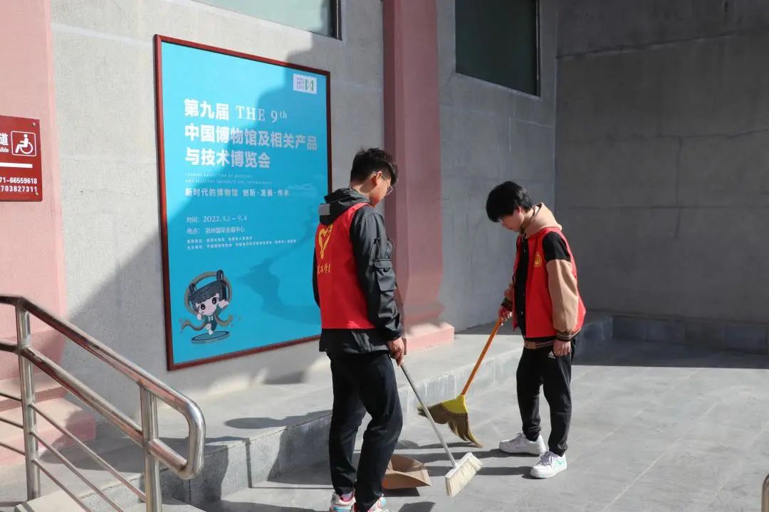 活动伊始,志愿者们井然有序地来到巩义市博物馆,在青志部部长的安排下,每个人积极配合。活动过程中,我院志愿者们发扬不怕苦,不怕累的奉献精神,志愿者们分工明确,干劲十足,对博物馆内外进行了清洁工作,为参观博物馆的游客们营造了清洁美丽的参观环境。