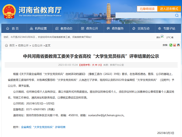 近日,河南省教育厅办公室下发《关于开展全省高校“大学生党员标兵”选树活动的通知》(豫教工委办〔2022〕39号),在各高校遴选、推荐、公示的基础上,省委教育工委组织专家,对各高校推荐的“大学生党员标兵”人选进行了评审,建工学院第五学生党支部刘倩同志荣获“2022年全省高校大学生党员标兵”荣誉称号。