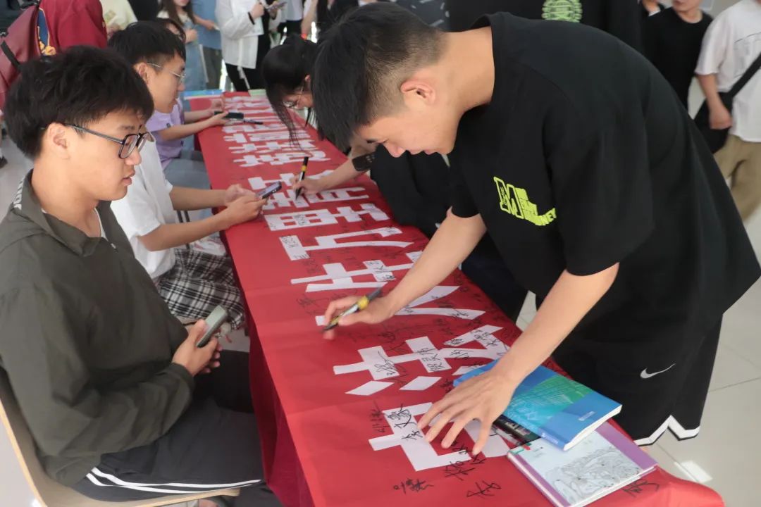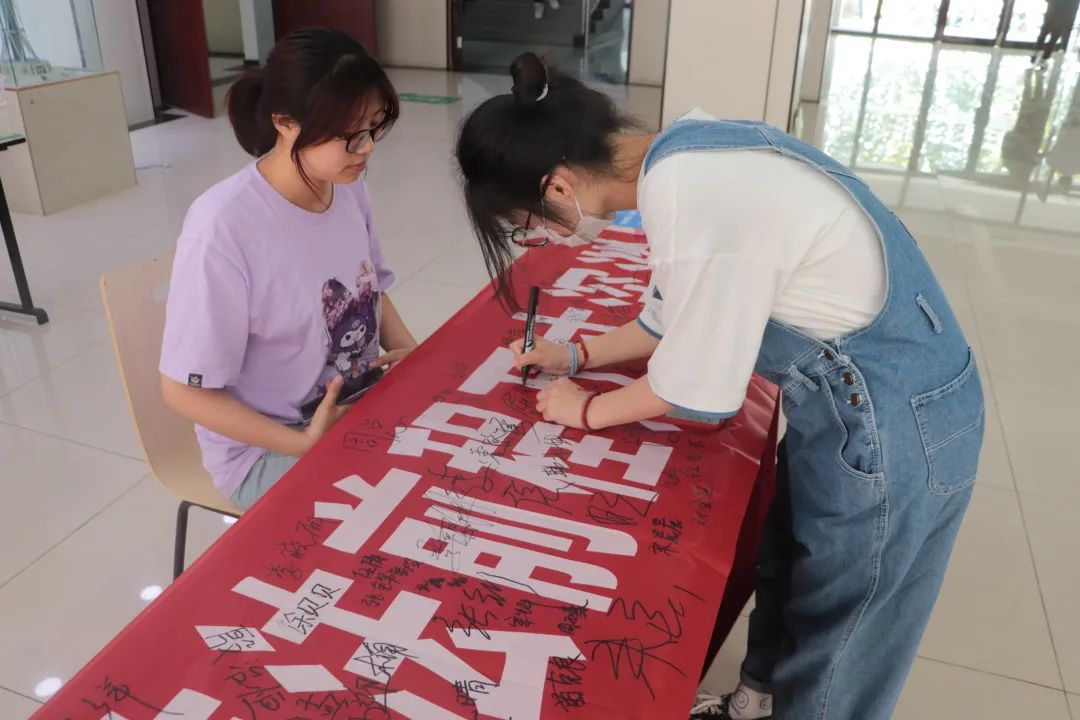 本次普法活动以签字的形式进行,在本次活动中,我院学生积极参与,纷纷在红色条幅上签上了自己的名字;本次活动使各位同学了解到了更多法律知识;同时,工作人员也与前来签字的同学积极互动,讲解法律的知识以及普法的重要性。