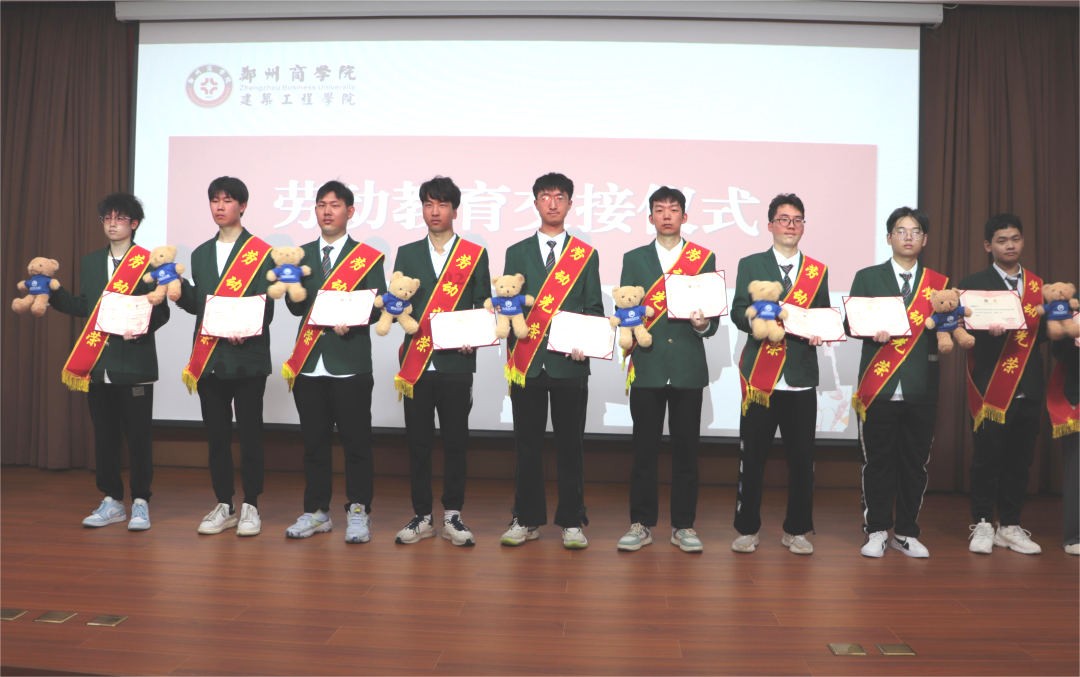 首先,刘帅书记宣读了《建工学院关于表彰2022-2023学年劳动教育先进班集体的决定》,并为获奖班级颁发荣誉证书;随后劳动教育专项工作组组长张愉愉老师宣读《建工学院2023-2024学年劳动小组长及各班劳动委员的聘任决定》,贺萌科长颁发劳动小组长聘书。随后,新任劳动小组长为23级劳动委员佩戴绶带、赠送纪念品。
