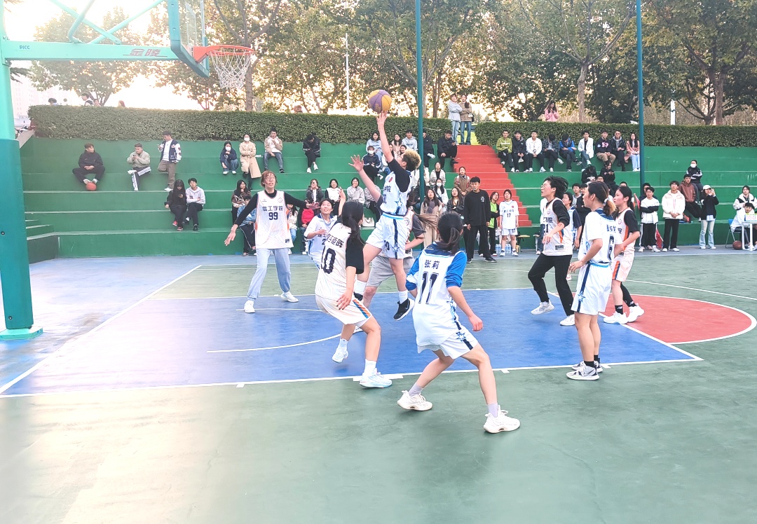 接下来是信工与建工的女篮比赛现场。各个参赛人员挥汗如雨,争分夺秒,有序进行着进攻防守,每一次传运球拍击地面,跳跃挥臂间撞击篮筐,都让人激情澎湃。她们毫不松懈,相互鼓励,稳控把球,激烈追赶,愈战愈勇。篮球场上有着青春的挥洒,就像莫扎特在琴键上,谱出美妙的乐章。