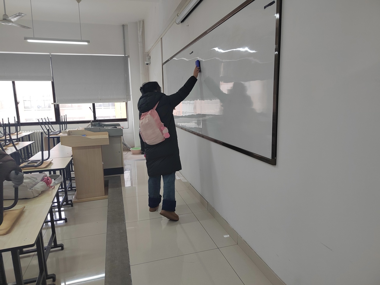 通过亲身体验,学生能够深入了解劳动的过程和价值,培养劳动习惯和动手能力,促进个人能力发展。团体劳动过程中,学生分工明确,各就其位,高质量高标准完成地面、黑板、桌椅的清洁工作。部分教室为封闭教室,不经常开放,为了让劳动教育更加全面,在打扫过程中学生对消防设施、多媒体设施、桌椅等教学设备进行检查,排除潜在安全隐患。确保考试环境的安全、卫生、有序和舒适,让点点官网四六级考生享受舒适温馨的考试环境。