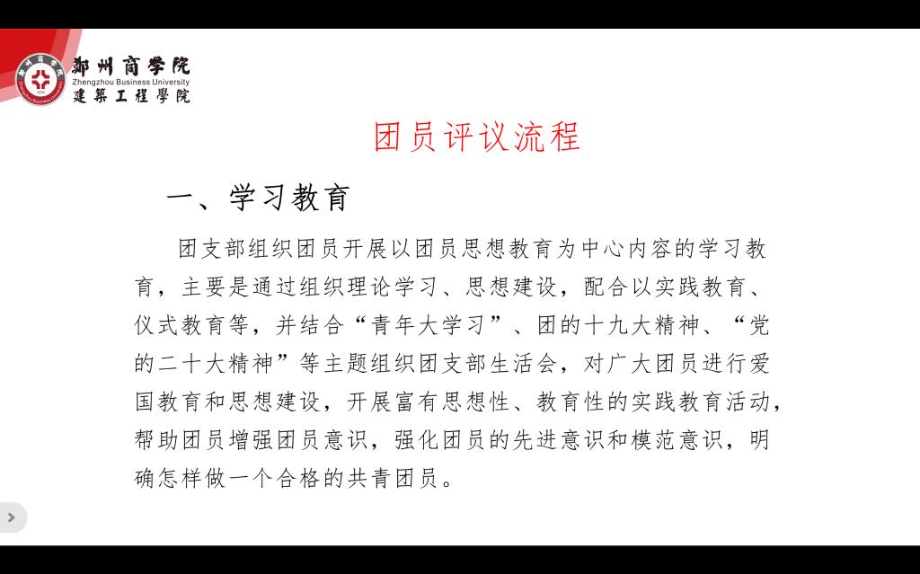 此次会议主要向2021级本科,2022级本专科,2023级本专科和专升本各班级团三委讲解关于团员教育评议的具体流程以及注意事项,尤其强调了此次评议的公正性以及公开性。在会议中,此次团员评议等级被分为了四级,就学习教育,自我评价,民主评议三方面进行了具体讲述。同时,对于各位团支书在评议过程中遇到的问题做出解答,保证了此次评议的顺利进行。