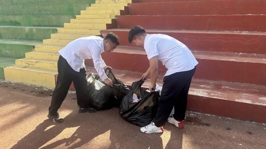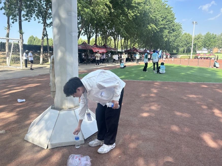 运动会期间要爱护会场环境,不得随意乱扔污物;参赛者不要将随身衣物用品等乱放乱丢,要根据要求放在指定的位置;观赛者妥善放置自己的物品,不要用私人物品占座,或者随意堆放一处。