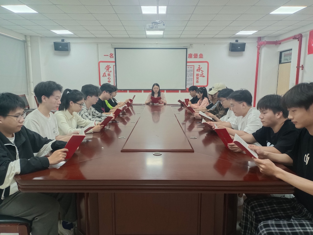 接着,刘思楠老师为党员同志发放《中国共产党纪律处分条例》手册,并带领党员同志们学习条例相关内容。引导党员同学们知敬畏、存戒惧、守底线,自觉遵守党的纪律。最后,学生党员进行集中研讨,检讨了身为党员日常行为中存在的不足,以及今后如何通过实际行动进行整改,交流分享自己的感悟。