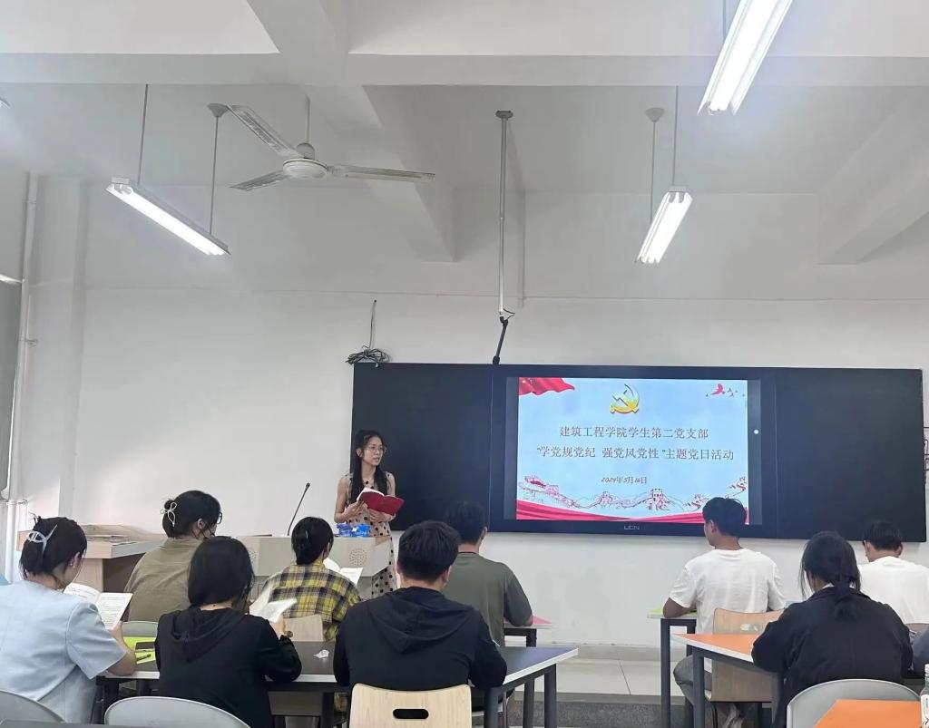为认真贯彻落实党纪学习教育要求,引导党员同志增强党性修养,树牢纪律、规矩意识,5月16日下午,我院学生第二党支部在亚泽楼305教室开展“学党规党纪 强党风党性”主题党日活动。