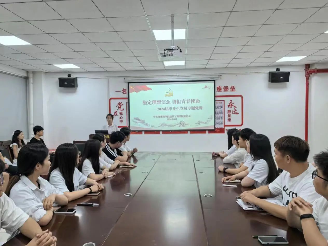 为进一步加强毕业生党员教育管理,切实做好毕业生党员的教育引导工作,6月5日下午,建工学院在亚泽楼113会议室开展2024届毕业生党员专题党课。党课由建工学院党委组织委员康雅丹讲授,2024届毕业生党员代表参加。
