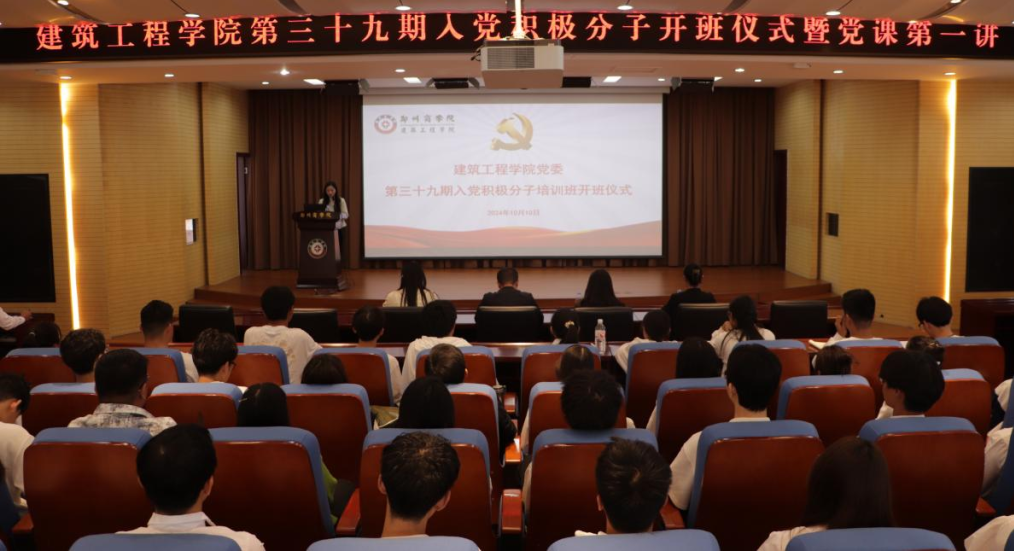 为深入贯彻落实习近平新时代中国特色社会主义思想,切实加强对入党积极分子的培养、教育和考察,提高入党积极分子政治素养和理论修养,严格把好党员发展“入口关”,10月10日上午,建筑工程学院在图书馆五楼报告厅举行第三十九期入党积极分子培训班开班仪式暨党课第一讲。建工学院党委书记朱宏东、各党支部书记及第三十九期入党积极分子培训班全体成员参加本次开班仪式,会议由建工学院党委组织委员贾镔同志主持。