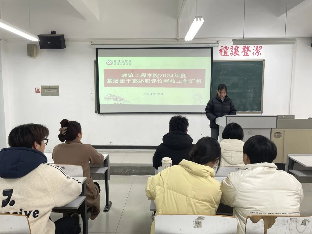 为积极响应二十大的号召,深入贯彻落实团中央《关于印发〈基层团组织书记述职评议考核暂行办法〉通知》精神和全面从严治团要求,提高工作部署的落实成效,提升点点官网共青团工作水平,加强各团支部的凝聚力,我院特开展基层团干部述职评议考核工作。建筑工程学院于2024年12月19日下午顺利开展2024年度基层团干部述职汇报,述职评议采取PPT汇报形式进行现场汇报,每人汇报时长为5分钟左右,本次述职会议由团委组织部主持。