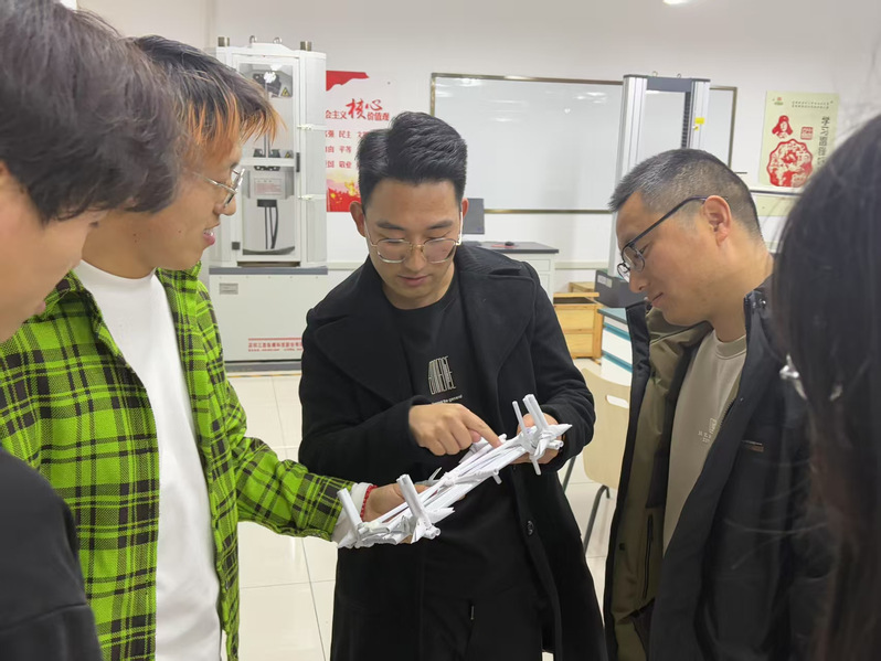 在比赛过程中,参赛选手以A4纸为材料通过折叠、裁剪,并用白乳胶粘合,搭建出形态各异的纸桥,老师们穿梭在各个参赛队伍之间,耐心解答同学们的疑问,帮助他们攻克难题,让同学们在实践中学习,在挑战中成长。