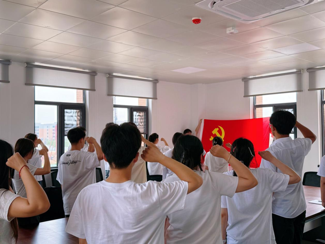 会议最后,在庄严肃穆的气氛中,临时党支部组织委员丰一帆同志带领全体与会党员重温入党誓词,表达了全体党员不忘初心、牢记使命,在暑期备考关键时期勇担责任、砥砺前行的坚定信念。