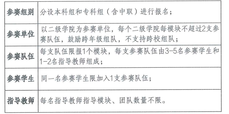 河南省全日制本科,高职高专,中职院校,所有建筑类相关专业的在读学生,学生报名不限年级,同一团队内研究生不可超过两人,本科组,专科组独立报名。