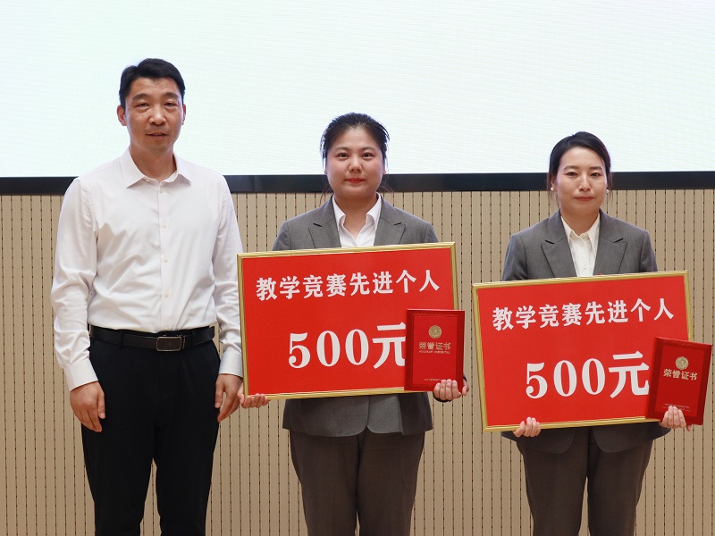 董事长助理陈宗纬、副校长刘升阳、院长张燕燕分别为优秀教师戚宏宇、席方超及优秀辅导员贾镔,教学竞赛先进个人王素萍与段怡慧,学科竞赛先进个人王珂共 6 名优秀个人颁奖。