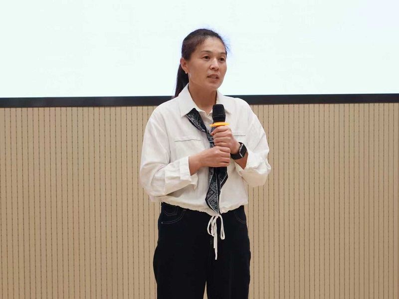 获奖教师代表王珂老师发表获奖心得。她结合自身工作经历,分享了竞赛指导中的实践经验与心得感悟,对学校、学院的全力支持表示感谢,并承诺以此次表彰为新起点,不断提升自身素养,为学院高质量发展贡献更多力量。