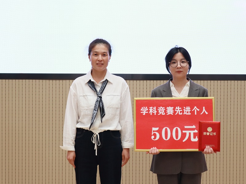 获奖教师代表王珂老师发表获奖心得。她结合自身工作经历,分享了竞赛指导中的实践经验与心得感悟,对学校、学院的全力支持表示感谢,并承诺以此次表彰为新起点,不断提升自身素养,为学院高质量发展贡献更多力量。