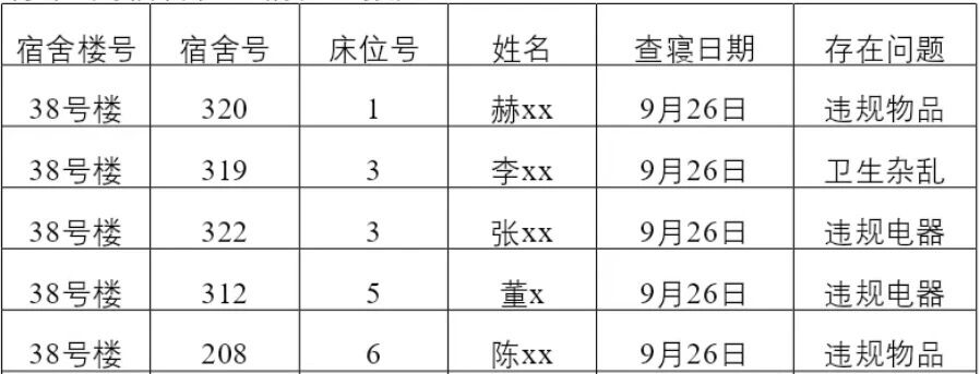 请以上宿舍和同学严格遵守宿舍管理制度,积极整改,并在整改完毕后拍照传至班级生活委员和辅导员处。