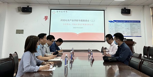 为高效推动校企合作,充分发挥学校“商科、应用型、国际化”的人才培养特色,促进形成产教融合的“政府、行业、学校、企业”四方协同育人新模式,9月28日下午,我院在1号楼112会议室召开了跨境电商产业学院专题推进会。会议由院长杨山峰主持,党委书记吕鹏、副院长李伟、国贸教研室主任夏元燕及河南省云尧电子商务有限公司营销总监张旭参加了此次会议。