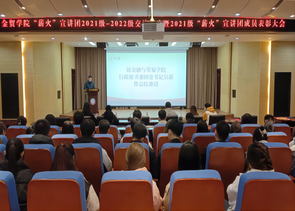 为深入贯彻落实习近平新时代中国特色社会主义思想,着力推进广大青年的思想政治引领,推动党史学习教育常态化。我院于11月26日在图书馆五楼报告厅开展“薪火”宣讲团2021级-2022级交接仪式暨“薪火”宣讲团2021级成员表彰大会。本次会议由我院团委组织部负责人郑钰冰主持,行政秘书兼团委书记吴森、辅导员老师、薪火宣讲团全体成员和第36、37期入党积极分子共同参与。