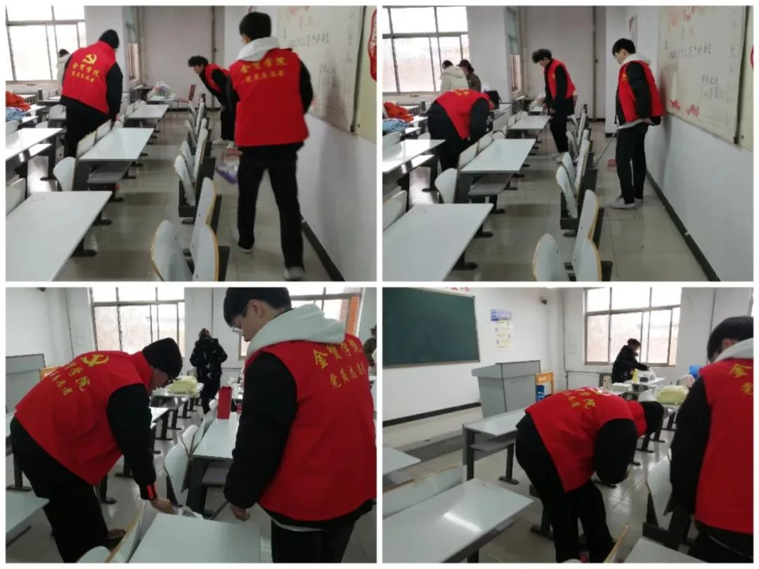 12月15日,为给参加大学英语四六级考试的考生创造干净整洁的考试环境,金贸学院学生第二、第三党支部组织开展“助力学习,温暖相伴”志愿清扫活动。大家积极响应号召并踊跃参与其中,以实际行动发扬志愿服务精神,彰显青春风采。
