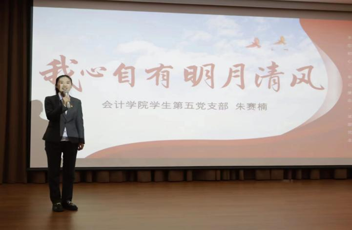 最后,庞艳华副教授对参赛选手的表现进行点评。庞艳华副教授老师首先对大家的精彩表现给予肯定,10位选手选题鲜明,重点剖析典型事例,在凸显比赛主题的同时也进一步提高了先进党员的思想感悟。庞艳华副教授老师重点强调了“信”“达”“雅”,“信”指的是讲党课要有坚定的立场和正确的思想观点,“达”指的是观点的诠释要到位,要有一定的自我认知,“雅”则是指党课的呈现要有合适的表达方式,事例选择要有鲜活有力,语言表达要足够亲切。作为新时代青年,我们应该不断学习习近平新时代中国特色社会主义思想,全面落实党的教育方针和立德树人根本任务,推动全面从严治党向纵深发展,学习清廉之风,让“廉”“美”润心田,“清”风吹校园。