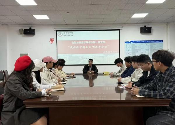 10月23日,金贸学院学生第三党支部于32号楼“一站式”团体活动室开展“庆祝新中国成立75周年华诞”主题党日活动,我院学生第三党支部全体党员参加。