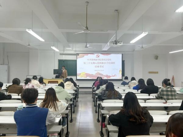 考试伊始,监考人员对考试注意事项进行了说明,强调了考试的规范性和严肃性,要求考生认真答题、诚信考试。此次考试采取闭卷形式进行,考题紧扣习近平新时代中国特色社会主义思想、党史党章、党员发展流程等党的基本知识,以及党的二十大和全国两会精神等相关内容,要点全面、结构合理、紧贴时政。考试过程中,考生态度端正,严守考场纪律,考场秩序井然,充分展现了我院入党积极分子自信、沉稳的精神风貌。