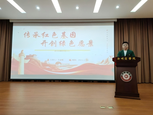 为促进红色基因的传承,稳步推进绿色愿景的开创,强化我院青年对传承红色基因与开创绿色愿景的思想认知,12 月 5 日,我院于图书馆五楼报告厅开展“传承红色基因,开创绿色愿景——‘薪火’宣讲团第五讲”。
