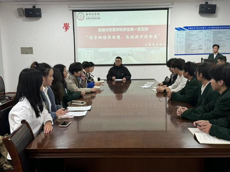 1224日,金贸学院学生第二党支部在一号楼112会议室开展相关主题会议。此次会议由支部书记曹君秀主持,我院学生第二党支部全体党员参与。
