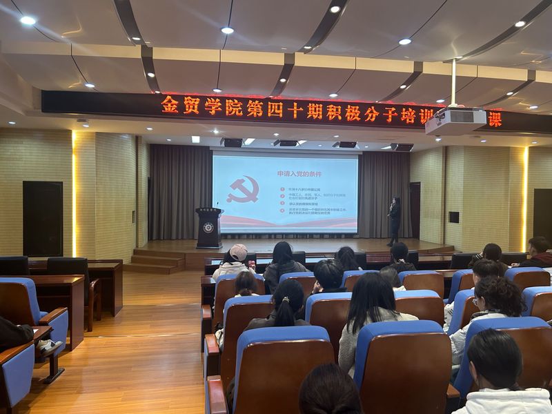 为提升入党积极分子的党性觉悟和政治素养,增强政治理论水平,切实做好入党积极分子的培养教育工作,我院于3月11日晚在图书馆五楼举行第四十期入党积极分子培训班开班仪式暨第一次入党积极分子党课培训,金贸学院党委书记吕鹏、行政秘书兼团委书记吴森、全体辅导员老师及本期入党积极分子参与本次培训。