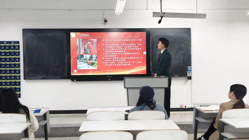 在同学们完成PPT内容的陈述后,评审老师们迅速切换到提问环节。老师们的问题角度多样,涵盖了党史、时政、党的最新政策、学院积极分子值班等多个领域。面对这些问题,同学们冷静思考,凭借扎实的知识储备和清晰的逻辑思维,有条不紊地给出答案。老师们认真倾听每一个回答,时而点头表示肯定,时而提出进一步追问,引导同学们深化对问题的理解。