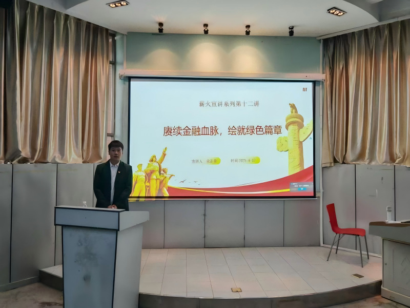 为赓续红色血脉,让我院青年传承红色金融精神,勇担时代重任,为建设美丽中国、驱动中华民族伟大复兴的巨轮破浪前行注入蓬勃青春活力,4月17日,我院“薪火”宣讲团于1号教学楼101会议室开展“赓续金融血脉,绘就绿色篇章”——薪火宣讲第十二讲。