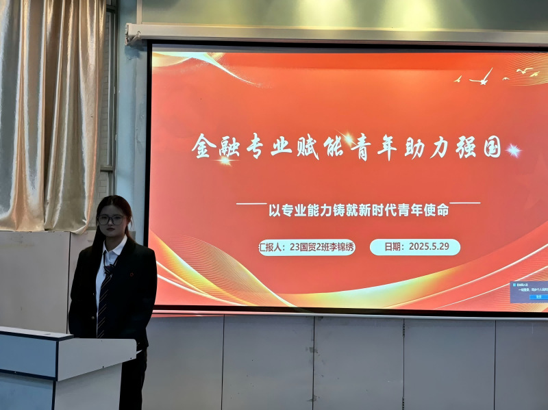 本次宣讲活动由“薪火”宣讲团成员23国贸2班李锦绣同学主讲。首先,宣讲人讲述了在“东升西降”百年变局下我国金融领域的战略定位,引发了我院青年对金融强国建设的深刻思考;其次,宣讲人通过例举高校学子在红色金融传承多领域的实践案例,激发了我院青年的担当意识与创新热情;最后,宣讲人阐述了在“加快建设金融强国”目标下青年人的报国坐标与行动路径,为我院青年的职业规划注入了理想动能,深化了使命觉悟。
